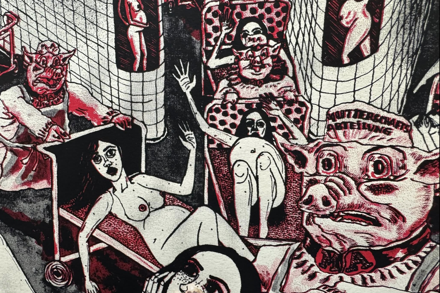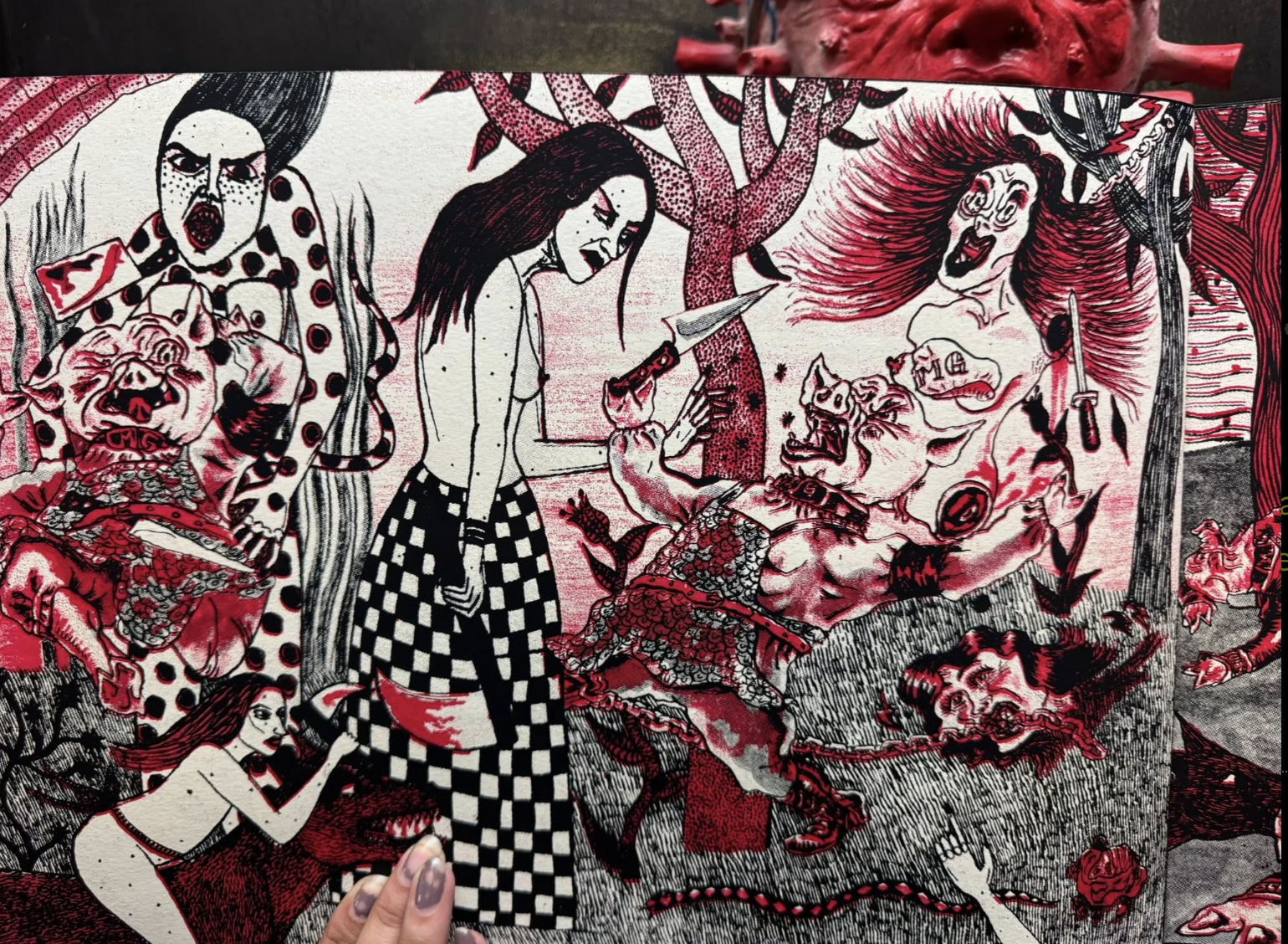 Absolutely stunning imported silk screen comic book by Salmi and Bathori, aggresively confrontational and beautiful imagery, printed with incredible skill and care. A work of true art, highly recommended.