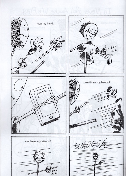 Freibert is one of the most natural cartoonists of his generation. His work is horror based, but feels more to me to function as comics about movement, how we perceive certain kinds of media through print, etc. At the heart of it is true cartoony drawing. These are exquisite comics.