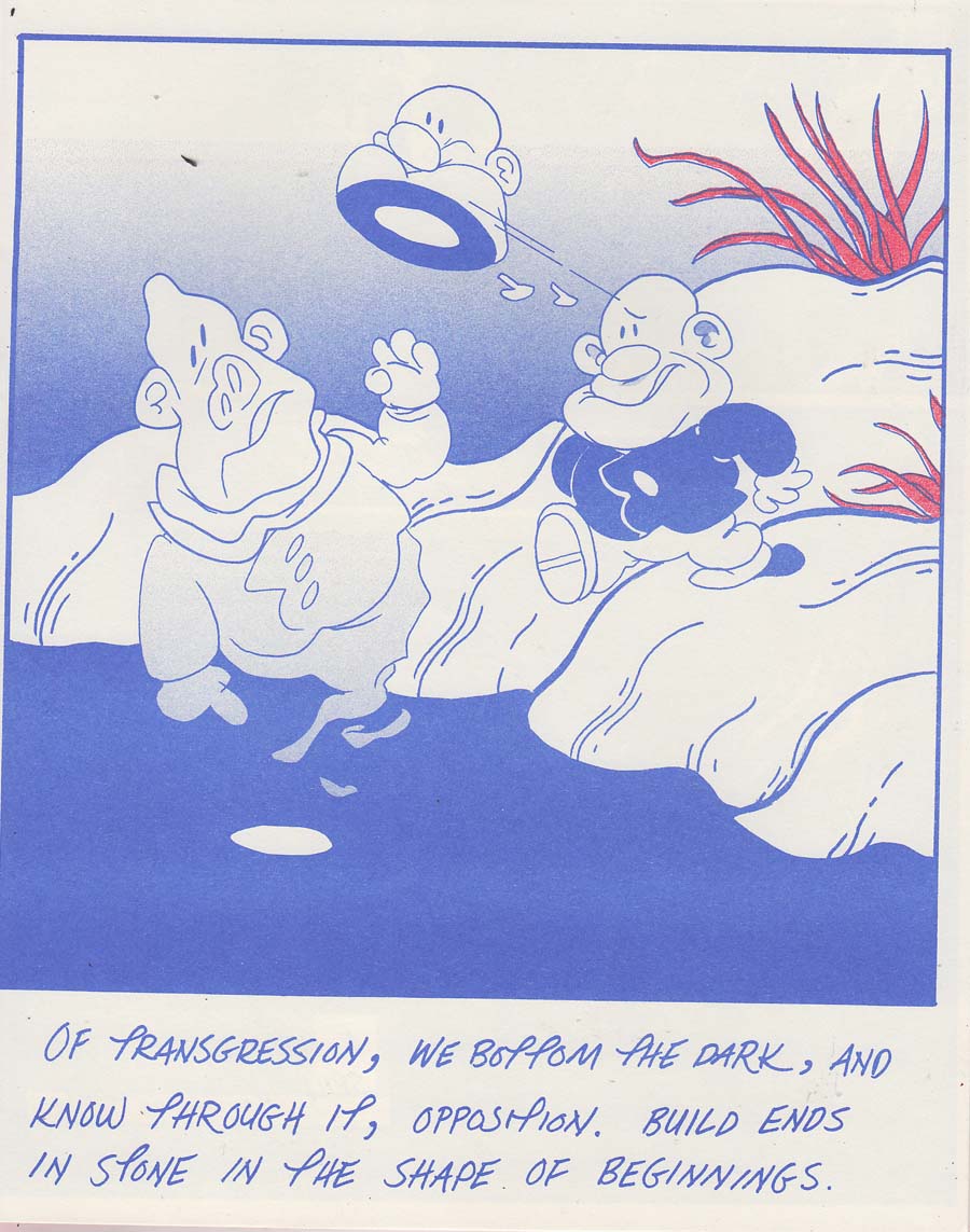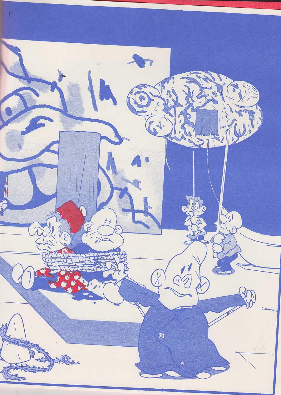 This is a really intriguing piece of work---some moments of it feature really appealing imagery with characters swaying around the page in just the right way. But the comic as a whole subverts the pure-pleasure angle with a twisting narrative/tone---and the cartoony nature of the project is offset with a low-level horrifying quality. Intelligent work with truly creative drawing----one of the best comics I've read in a while.