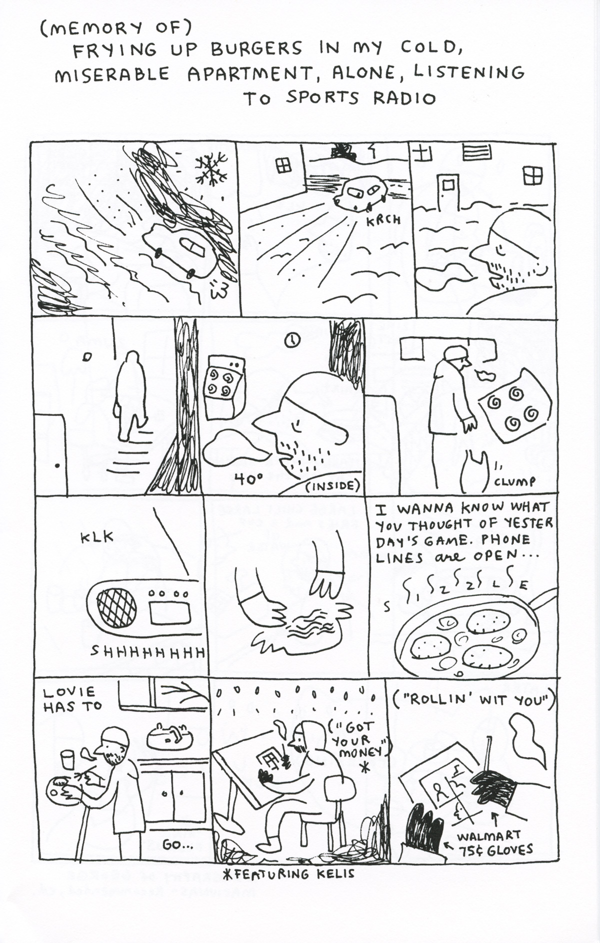 I'm beyond honored to be able to carry KING CAT in the Domino shop. This is a comic that should require no introduction, because a lot of us are here looking at this site because of the ideals and aesthetics that King Cat helped us articulate. Porcellino's long running auto-biographical magazine should never be taken for granted though, as it evolves artistically and spiritually along with its author. What gets lost a lot in people's love for this legendary publication is, I think, how singular it is in its artistry. The buts-and-bolts achievement---now over 75 issues of a black and white mini-comic written and drawn by one person under all the different pressures of life for over two decades----is what staggers anyone approaching this series for the first time. But it's Porcellinos totally unique take on the idea of cartooning that sings through every time you pick it up. It's about his life but it's also about him processing the world through his own cartoon language---a language that reveals itself to be more and more forward thinking and elegant as time goes on. The ideals are influential but the art even more so. If you haven't read this comic before, now's the time.