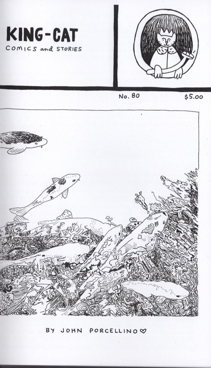 I'm beyond honored to be able to carry KING CAT in the Domino shop. This is a comic that should require no introduction, because a lot of us are here looking at this site because of the ideals and aesthetics that King Cat helped us articulate. Porcellino's long running auto-biographical magazine should never be taken for granted though, as it evolves artistically and spiritually along with its author. What gets lost a lot in people's love for this legendary publication is, I think, how singular it is in its artistry. The buts-and-bolts achievement---now over 75 issues of a black and white mini-comic written and drawn by one person under all the different pressures of life for over two decades----is what staggers anyone approaching this series for the first time. But it's Porcellinos totally unique take on the idea of cartooning that sings through every time you pick it up. It's about his life but it's also about him processing the world through his own cartoon language---a language that reveals itself to be more and more forward thinking and elegant as time goes on. The ideals are influential but the art even more so. If you haven't read this comic before, now's the time.