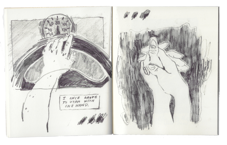 Well, this is an out of left field and truly beautiful item. An original graphic novel by a cartoonist I was previously unfamiliar with, drawn in pencil (?) and amazing assurance and ease, with sketches morphing shape and emotional meaning. On surface level, a moleskine diary about a road trip/relationship, the power and improvisation seen in these drawings reveals a true power. Both casual and assertively final, this is a unique work.