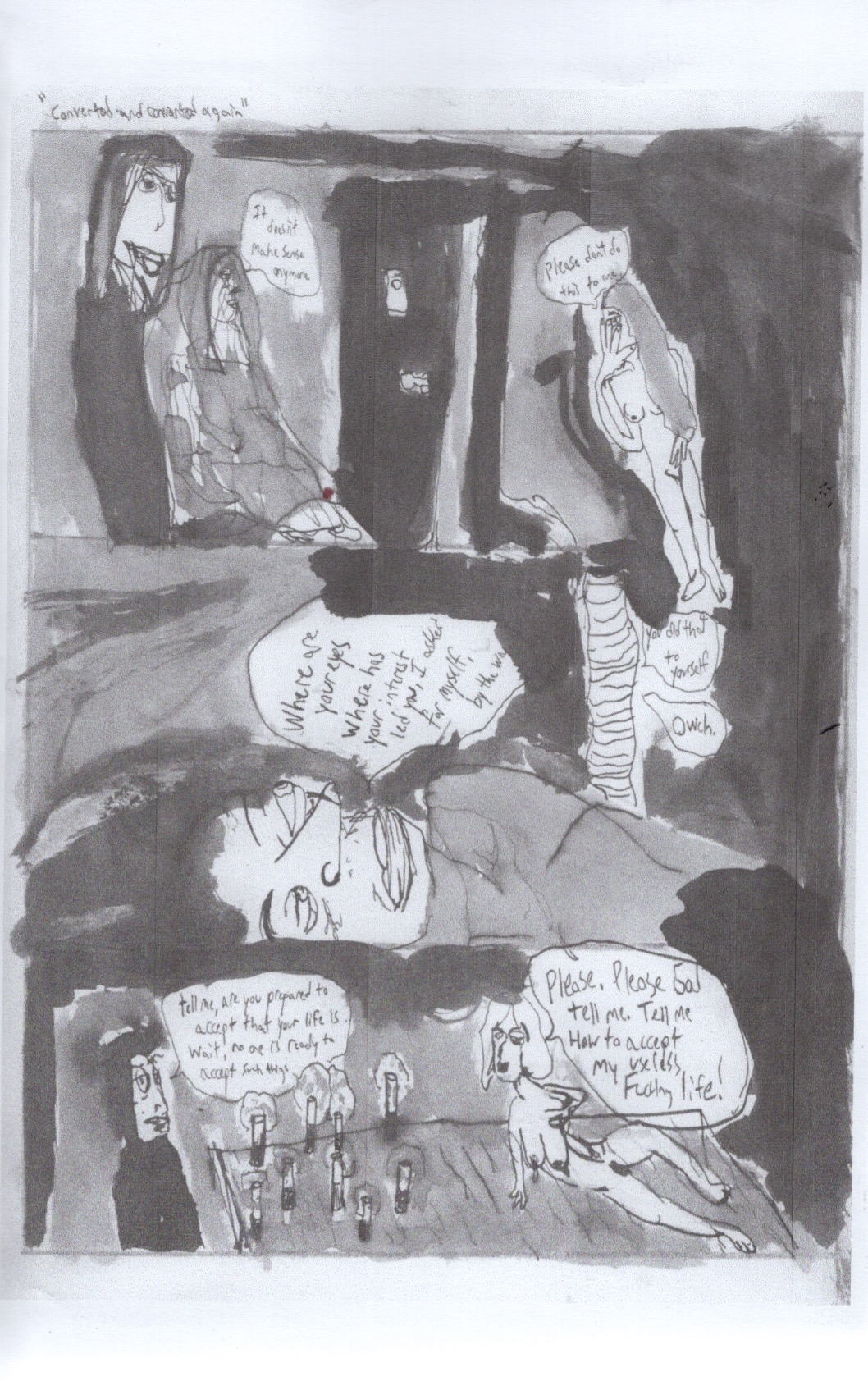 I think this is one of the best pieces of art yet from Katie Lane, who has produced fascinating experimental comics in the past. Here, we find her drawing in her own hand, working with very direct subject matter and achieving something that is powerful the minute you lay eyes on it. An experience you can only have with a self published comic, this is a work to contend with...I absolutely love the drawing here.