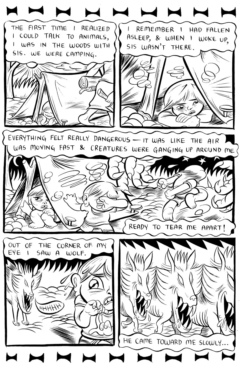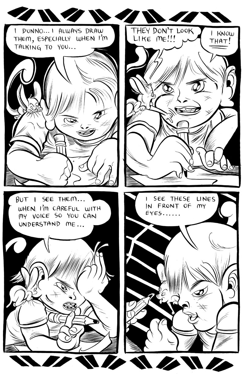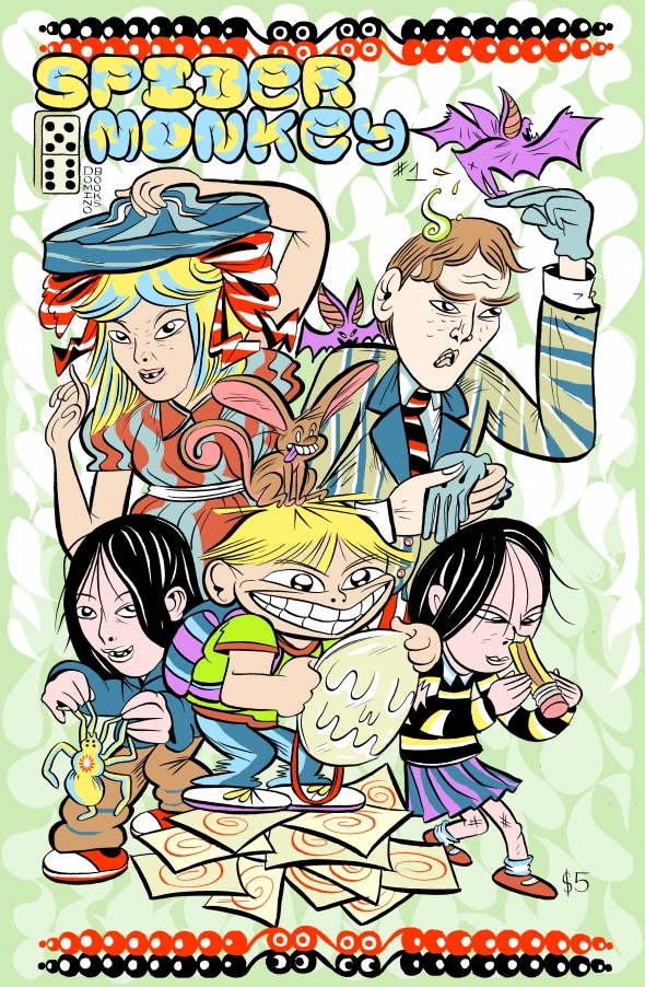 Spider is a small boy living in a kinetic pinball city. He spends his time with his sister who enters their home every day with a ritualistic flair. Spider's best friend is a small creature named Nako who he speaks to constantly. In fact, Spider is learning to communicate with animals of all kinds. In the first issue, we meet Spider's idol, Emeric Powell, who has his own designs on animal communication/ Spider-Monkey is a tour de force from artist Jesse McManus (Kramers Ergot 7), working from a script by Austin English, incorporating horror manga, children's comics and fantastic golden age elements into one beautiful comic.